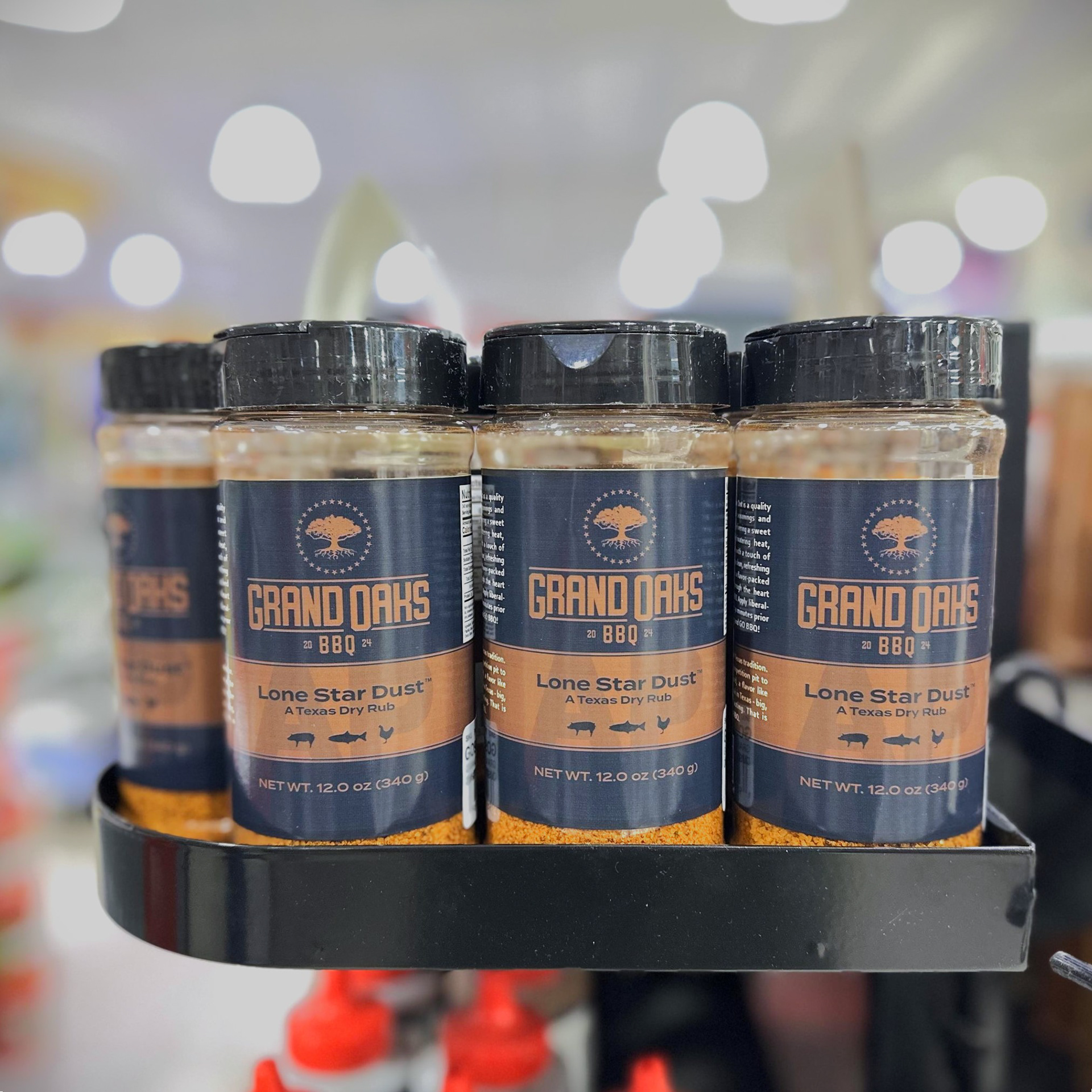Grand Oaks BBQ Lone Star Dust has made its way into stores and homes across the world to this point. It was quickly accepted into local specialty shops and has been a fast seller. The seasoning has been used as far as Germany and become a favorite of many and will soon have other other seasonings under the name of Grand Oaks in the lineup.