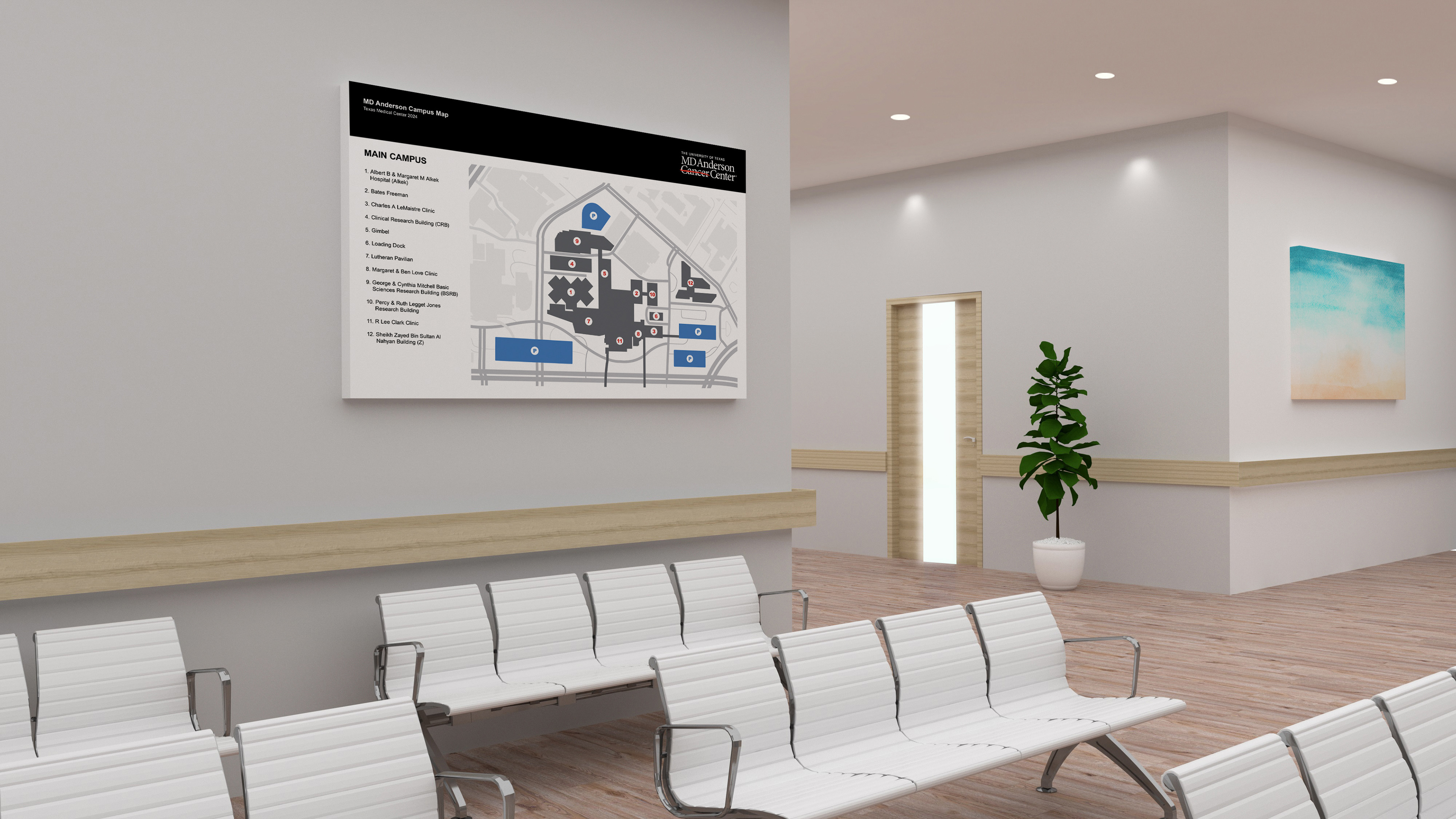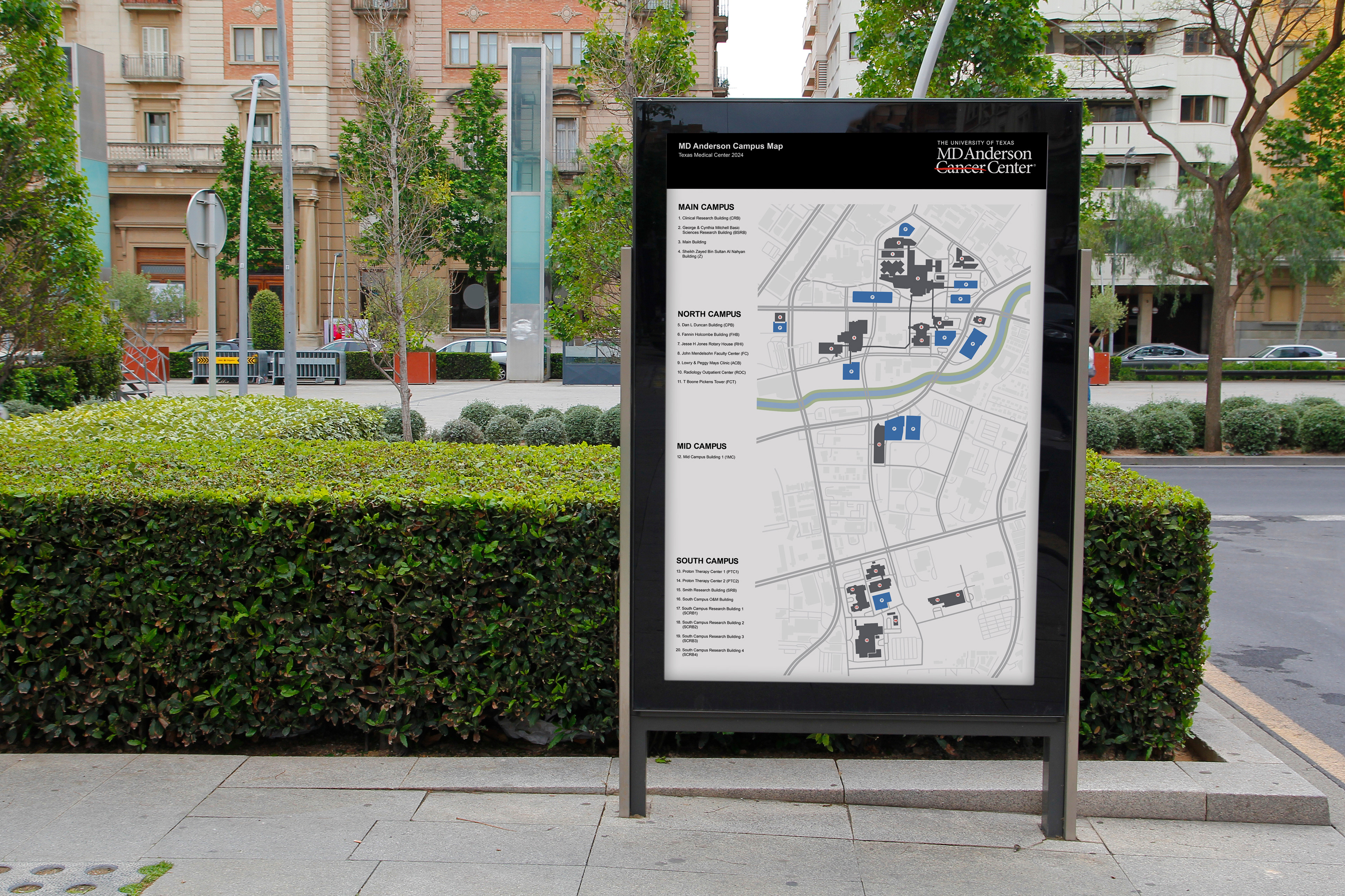The completed map system transformed a confusing campus experience into a clearer, more user-centered wayfinding tool. By connecting building names, acronyms, and parking locations within one cohesive visual system, the design made the MD Anderson TMC campus easier to understand and navigate. The full campus map, along with the north, mid, and south campus versions, created a scalable solution that improved clarity, readability, and usability for users unfamiliar with the campus.