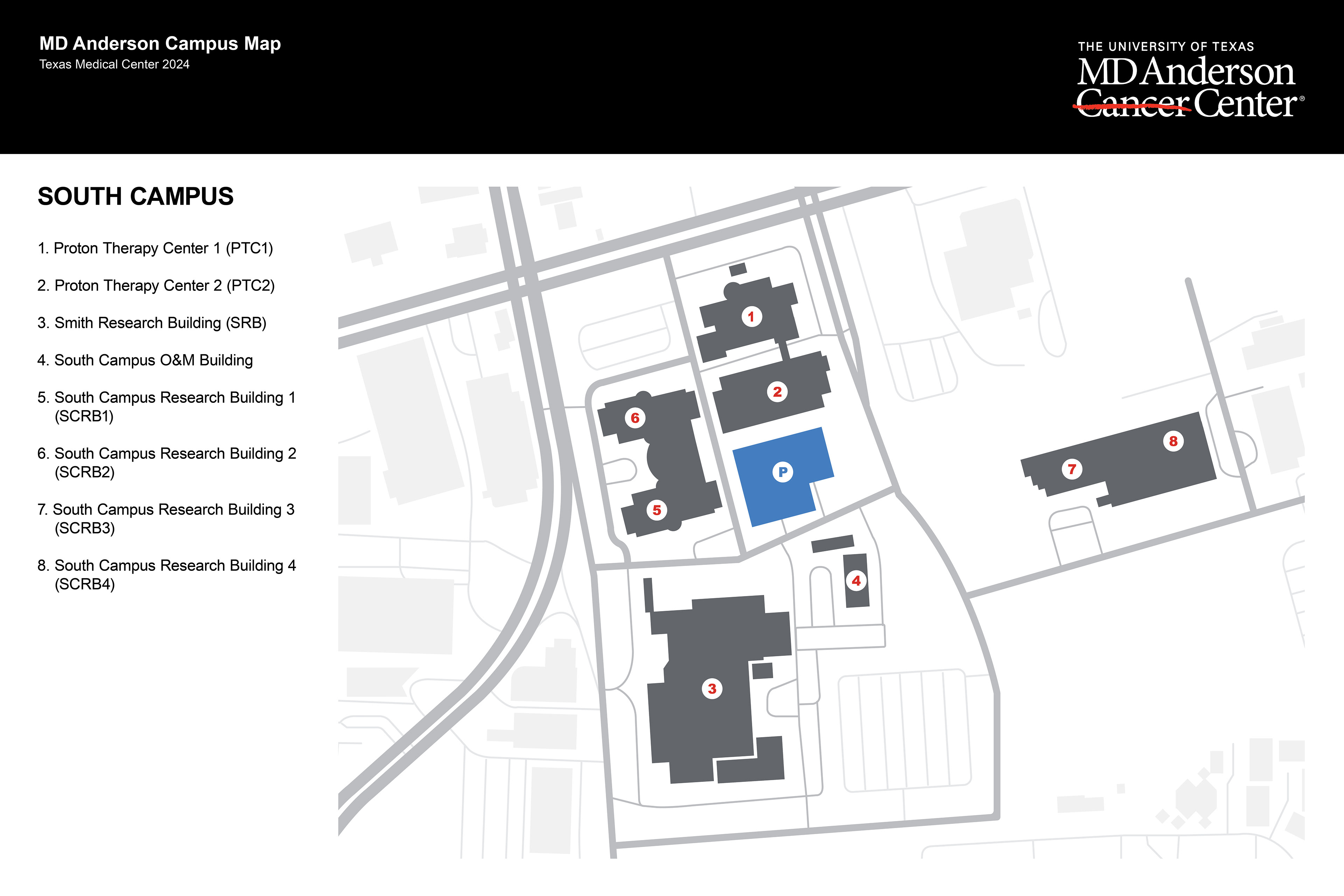 Delivered: Created a four-piece map suite that balances detail and clarity, showing MD Anderson buildings alongside MD Anderson and TMC parking garages in a structured, easy-to-navigate format.